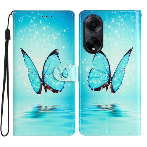 Para Oppo A98 Funda de Cuero para Teléfono con Dibujo Coloreado (Mariposa Azul)