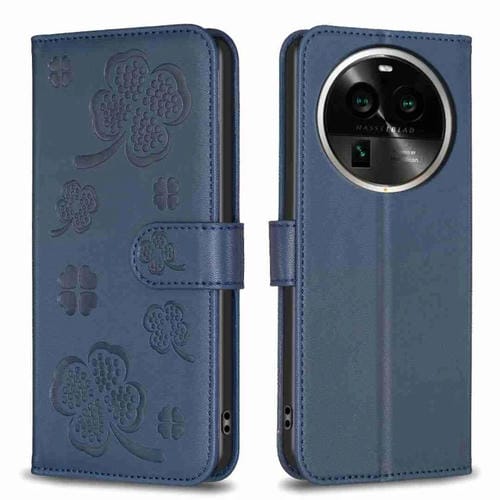 Para Oppo Find X6 Pro Funda de Cuero con Relieve de Cuatro Hojas para Teléfono (Azul)