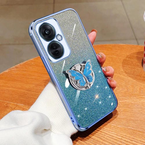 Para Oppo K11X Funda para Teléfono de TPU con Soporte de Mariposa con Brillo Degradado Plateado (Azul Sierra)