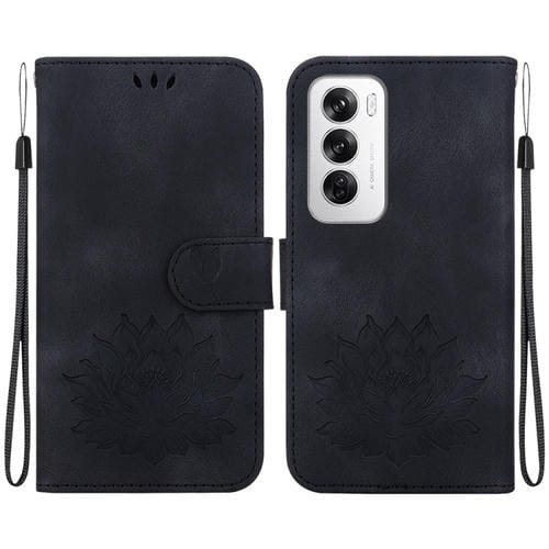 Para Oppo Reno12 5G Global Lotus Funda de Cuero En Relieve para Teléfono (Negro)