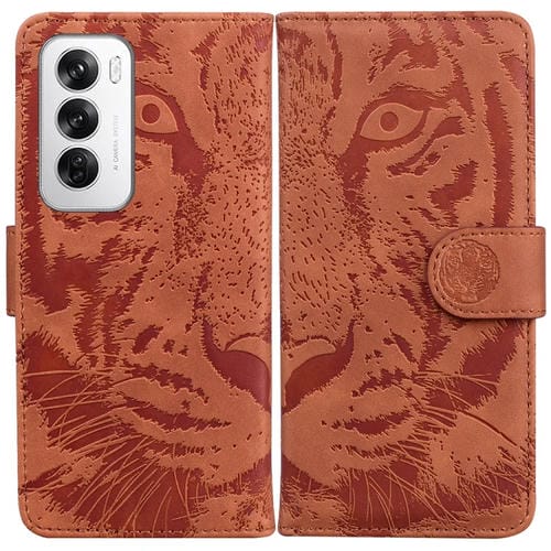 Para Oppo Reno12 5G Global Tiger Patrón En Relieve Funda de Cuero con Tapa para Teléfono (Marrón)
