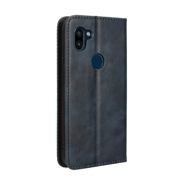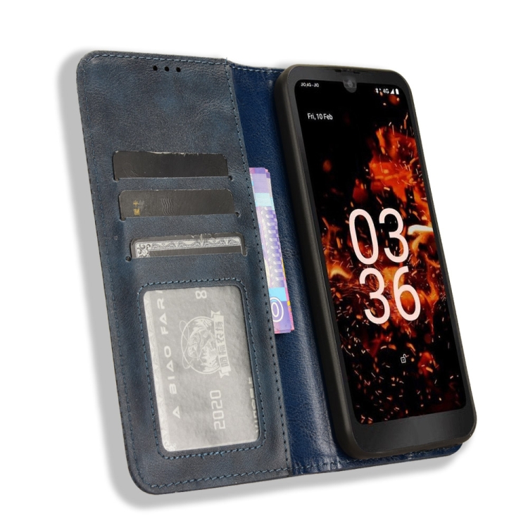 Funda para Orbic Fun + 4G Cuero Textura Retro Hebilla Magnética (Azul)