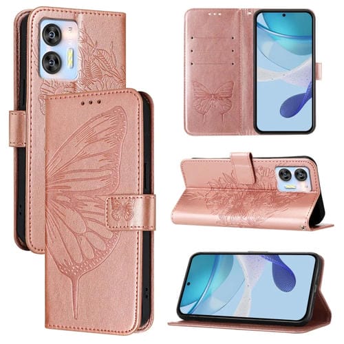Funda de Cuero para Oukitel C36 y C35 con Mariposa en Relieve (Oro Rosa)