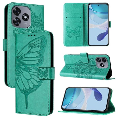 Funda de Cuero para Oukitel C51 con Mariposa en Relieve (Verde)