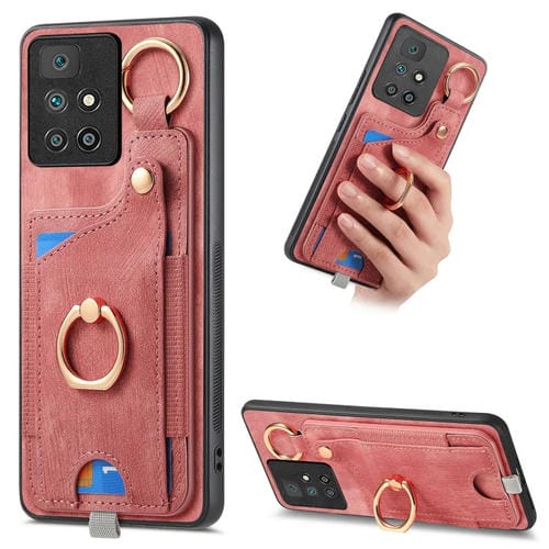 Para Redmi 10 Funda para Teléfono con Bolsa para Tarjeta con Anillo y Sensación de Piel Retro con Lazo para Colgar (Rosa)