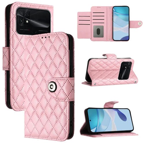 Para Redmi 10C / Redmi 10 2022 India Funda para Teléfono con Tapa de Cuero con Textura Rómbica y Cordón (Rosa)