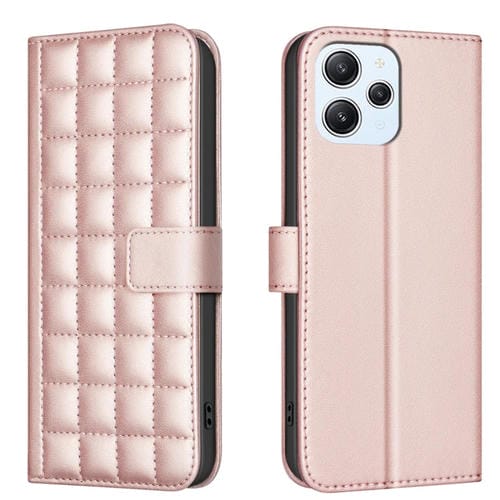 Para Redmi 12 4G Funda de Cuero con Textura Cuadrada (Oro Rosa)