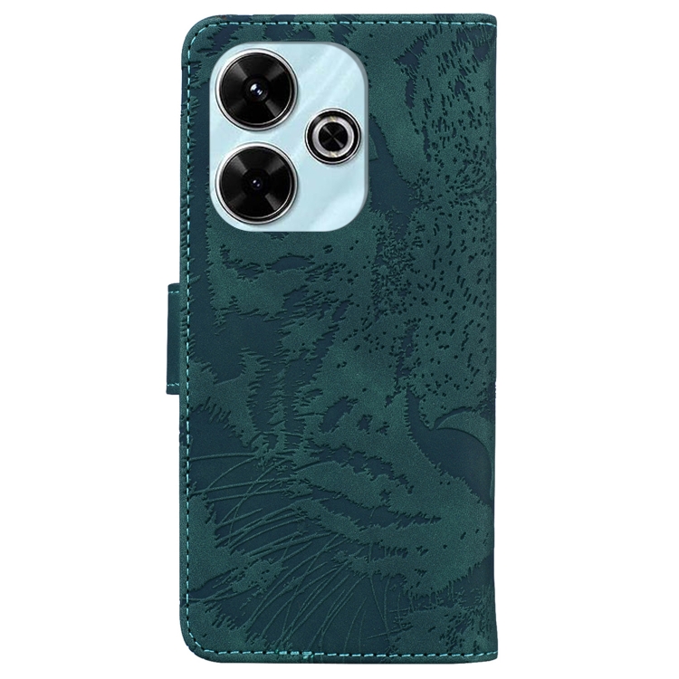 Para Redmi 13 4G Tiger Embossed Pattern Funda de Cuero con Tapa para Teléfono (Verde)