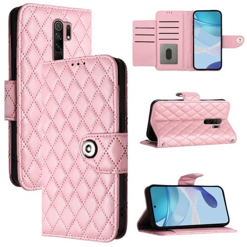 Para Redmi 9/9 Prime India Funda para Teléfono con Tapa de Cuero con Textura Rómbica y Cordón (Rosa)