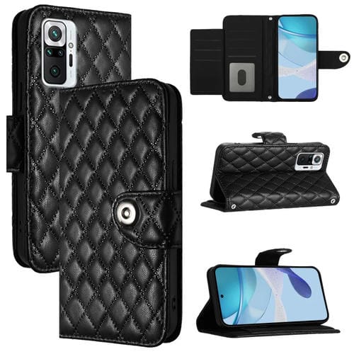 Para Redmi Note 10 Pro / Note 10 Pro Max Funda para Teléfono de Cuero con Tapa con Textura Rómbica y Cordón (Negro)