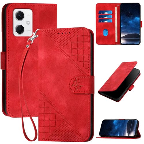 Para Redmi Note 12 5G Yx0080 Grid Butterfly Patrón En Relieve Funda de Cuero con Tapa para Teléfono con Cordón (Rojo)