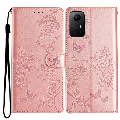 Para Redmi Note 12S Funda de Cuero para Teléfono con Mariposas y Flores (Oro Rosa)