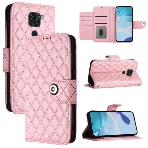 Para Redmi Note 9 Global / 10X 4G Funda para Teléfono con Tapa de Cuero con Textura Rómbica y Cordón (Rosa)
