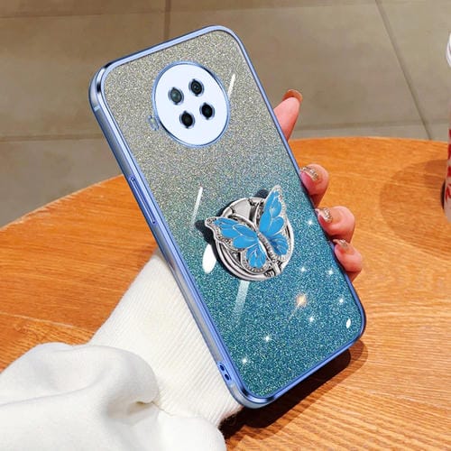 Para Redmi Note 9 Pro 5G Funda para Teléfono de TPU con Soporte de Mariposa con Brillo Degradado Plateado (Azul Sierra)
