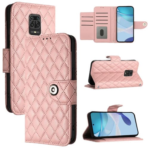 Para Redmi Note 9S / Note 10 Lite Funda para Teléfono de Cuero con Tapa con Textura Rómbica y Cordón (Rosa Coral)