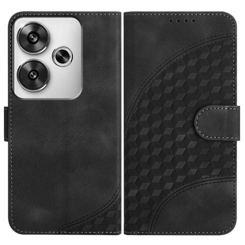 Para Redmi Turbo 3 / Xiaomi Poco F6 Yx0060 Funda de Cuero para Teléfono con Relieve y Cabeza de Elefante con Cordón (Negro)