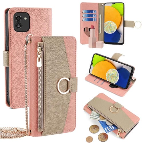 Funda de cuero para Samsung Galaxy A03 Global Crossbody Litchi Texture (Rosa)