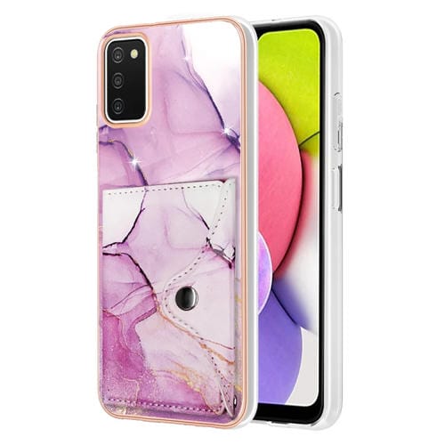Estuche para Teléfono Samsung Galaxy A03S Versión UE con Ranura para Tarjeta y Patrón de Mármol (Oro Rosa Púrpura)