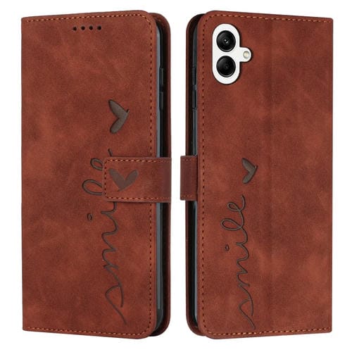 Funda para Teléfono Samsung Galaxy A05 Skin Feel Heart Cuero En Relieve con Cordón Largo (Marrón)