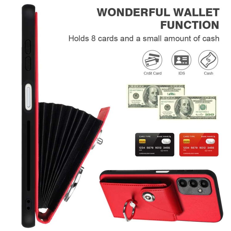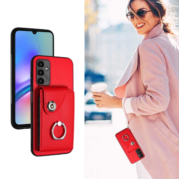 Funda para Teléfono Samsung Galaxy A05S 4G Organ Card Bag Ring Holder con Cordón (Rojo)