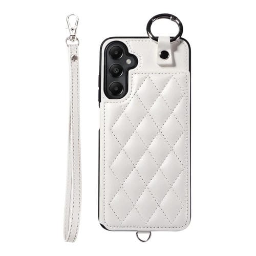 Estuche para Teléfono Samsung Galaxy A05S con Bolsa para Tarjetas Textura Rómbica y Cordón Corto (Blanco)