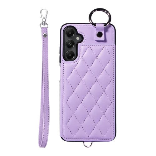 Estuche para Teléfono Samsung Galaxy A05S con Bolsa para Tarjetas Textura Rómbica y Cordón Corto (Púrpura)