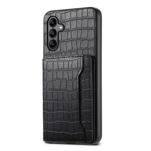 Estuche para Teléfono Samsung Galaxy A05S Bolsa para Tarjetas Textura de Cocodrilo (Negro)