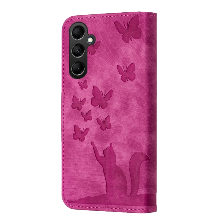 Funda para Teléfono Samsung Galaxy A05S Cuero con Tapa en Relieve Butterfly Cat (Rosa)