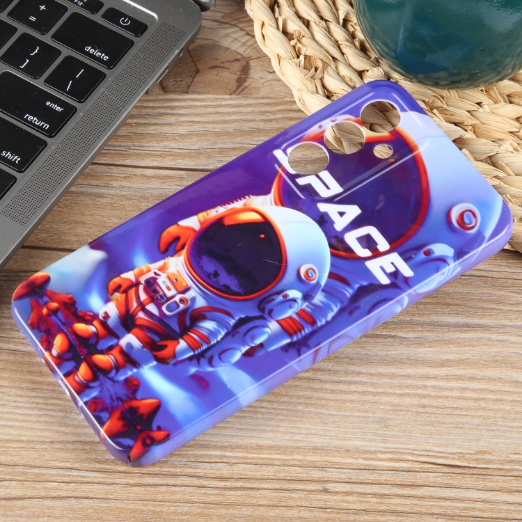 Funda para teléfono Samsung Galaxy A12 con orificio preciso PC patrón pintado (Astronauta Blanco Naranja)