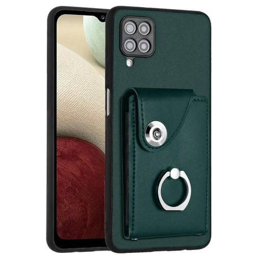 Funda para Teléfono Samsung Galaxy A12 de PU con Soporte para Anillo y Bolsa para Tarjeta (Verde)