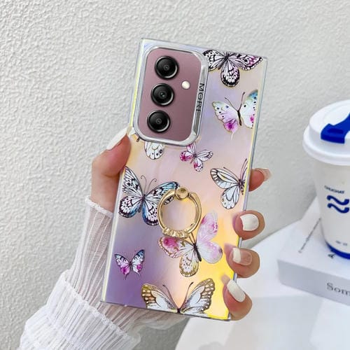 Estuche para teléfono Samsung Galaxy A14 5G con soporte para anillo de mariposa láser con galvanoplastia (Mariposas Rosadas Ab2)