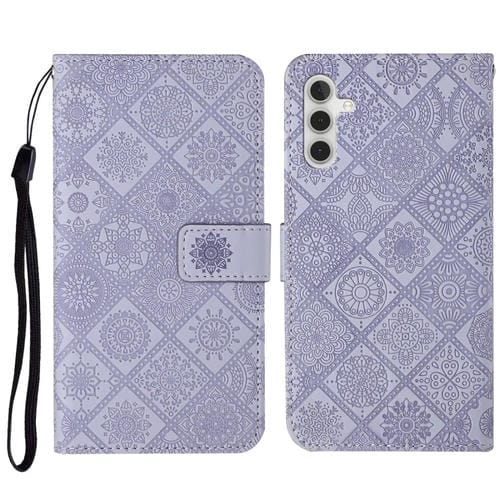 Estuche para Teléfono Samsung Galaxy A14 5G Cuero Patrón En Relieve Estilo Étnico (Púrpura)