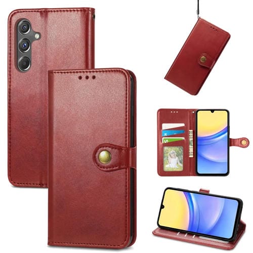 Funda de Teléfono Samsung Galaxy A15 Cuero Hebilla Color Sólido Retro (Rojo)