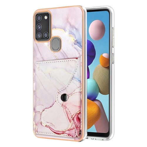 Estuche para Teléfono Samsung Galaxy A21S con Ranura para Tarjeta Imd Patrón de Mármol (Oro Rosa)