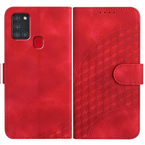 Funda de Cuero Samsung Galaxy A21S Yx0060 con Relieve y Cabeza de Elefante con Cordón (Rojo)