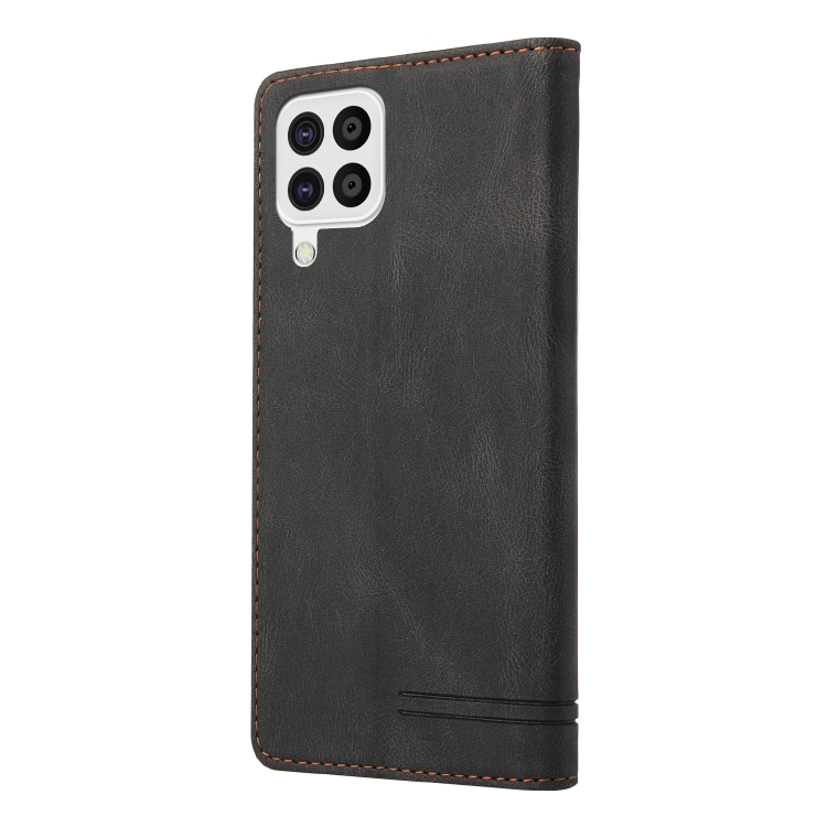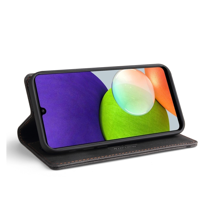 Funda de Cuero Samsung Galaxy A22 4G Skin Feel Tapa Horizontal Cepillo Antirrobo Soporte (Negro)