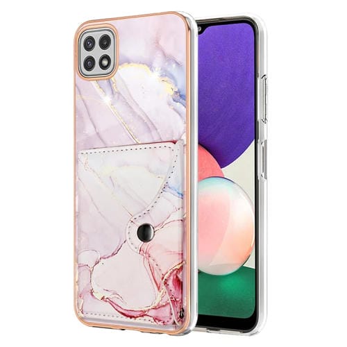 Estuche para Teléfono Samsung Galaxy A22 5G EE.UU con Ranura para Tarjeta y Patrón Mármol (Oro Rosa)