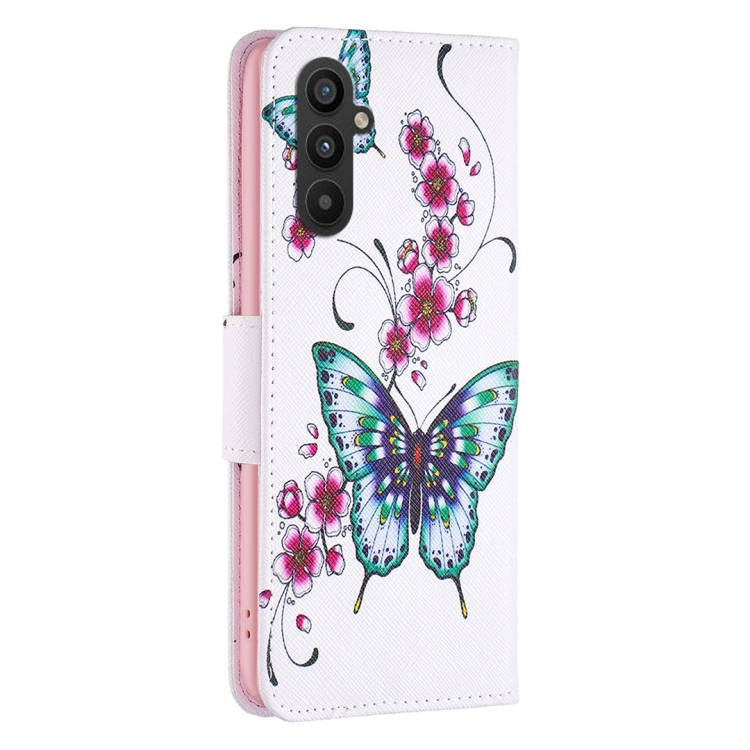 Para Samsung Galaxy A24 4G Estuche de teléfono de cuero con dibujo coloreado (mariposa de flor de durazno)