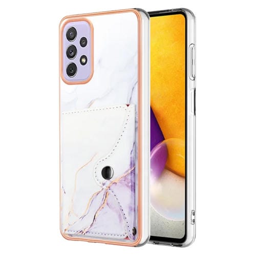 Estuche para Teléfono Samsung Galaxy A32 5G con Ranura para Tarjeta Imd y Patrón de Mármol (Blanco y Morado)