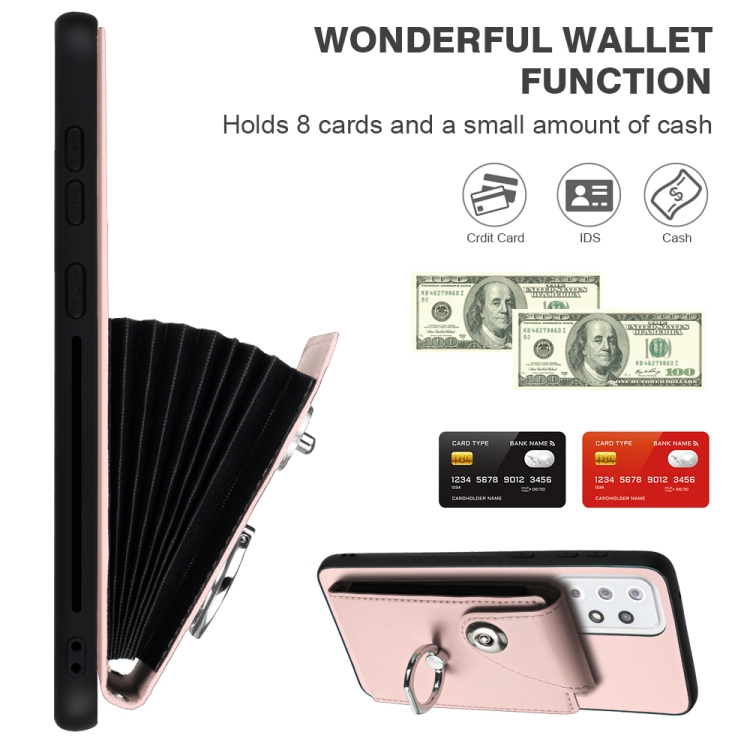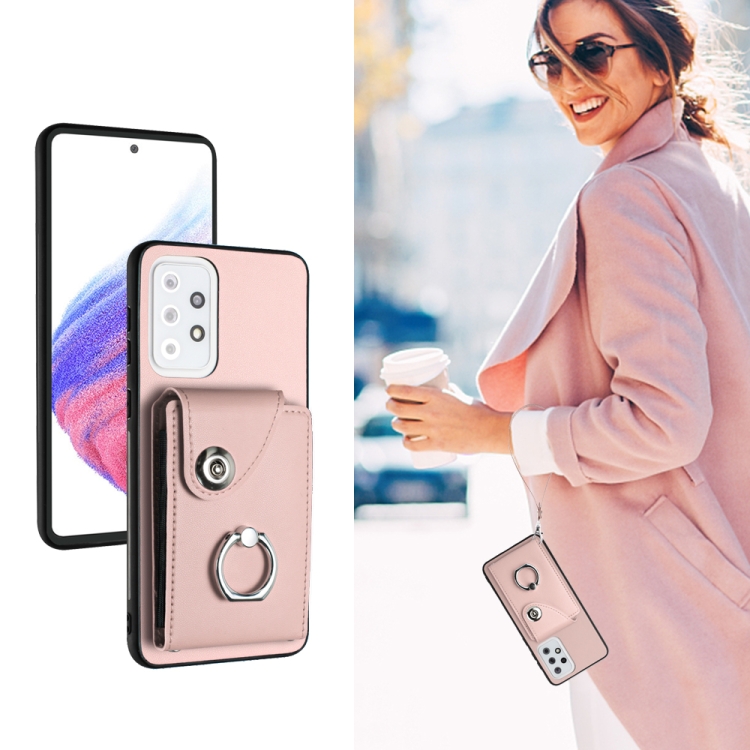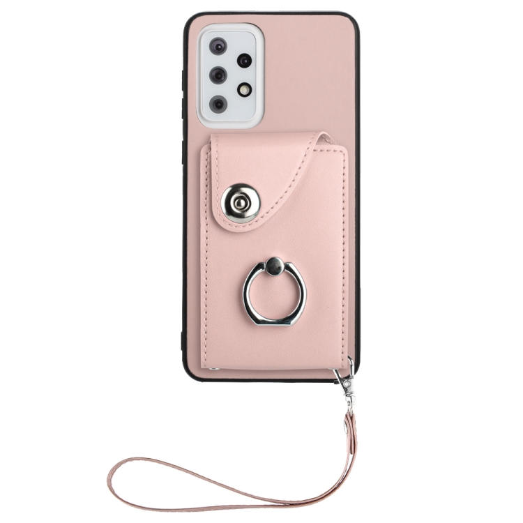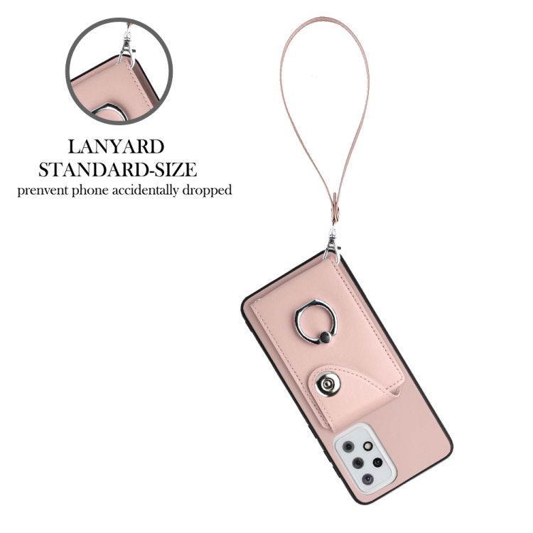 Funda para Teléfono Samsung Galaxy A33 5G Bolsa para Tarjeta de Órgano con Soporte para Anillo y Cordón (Rosa)