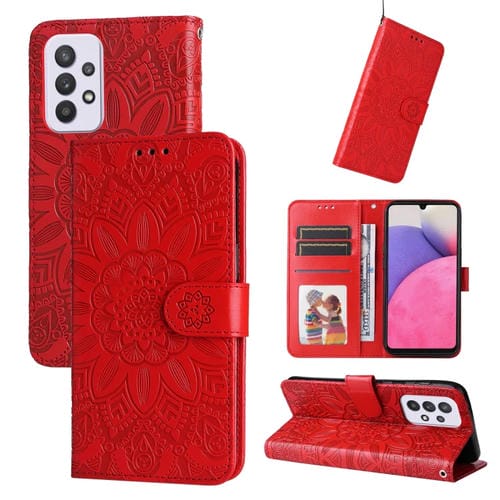 Estuche para teléfono Samsung Galaxy A33 5G Cuero Estampado Girasol En Relieve (Rojo)