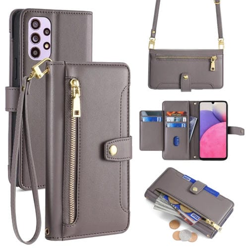 Funda para Samsung Galaxy A33 5G Cuero con Billetera Cremallera Cuerpo Cruzado Textura Oveja (Gris)
