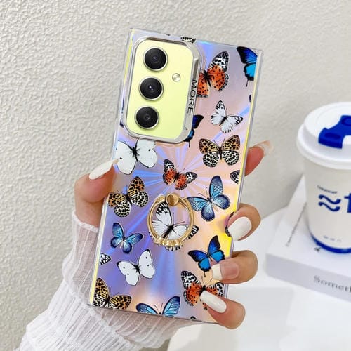 Estuche para Teléfono Samsung Galaxy A34 5G con Soporte Anillo Mariposa Láser Galvanoplastia (Mariposas de Color)