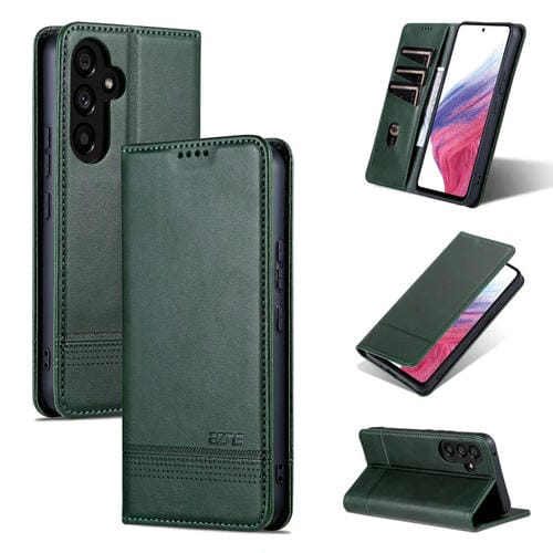 Funda para teléfono Samsung Galaxy A35 5G Azns con tapa magnética y textura de pantorrilla (Verde Oscuro)