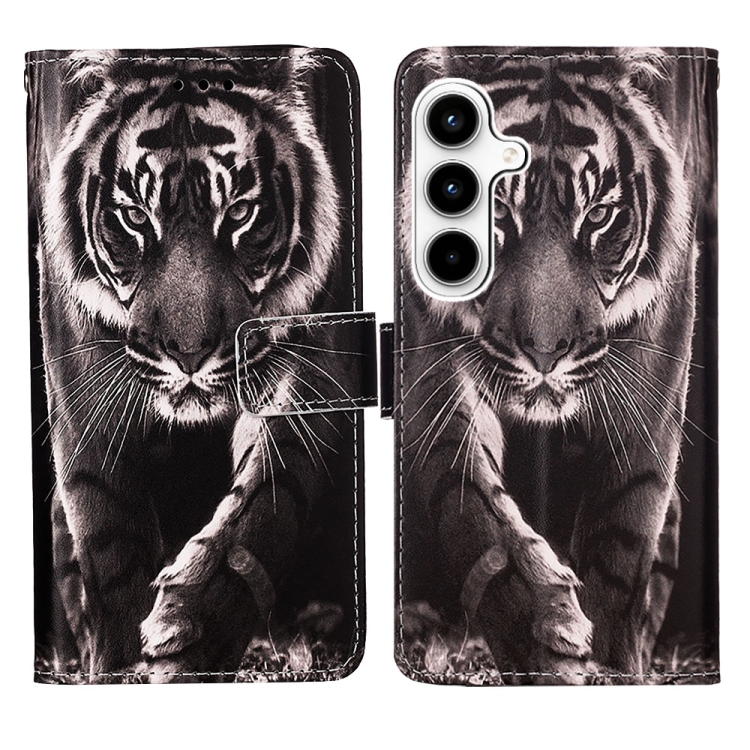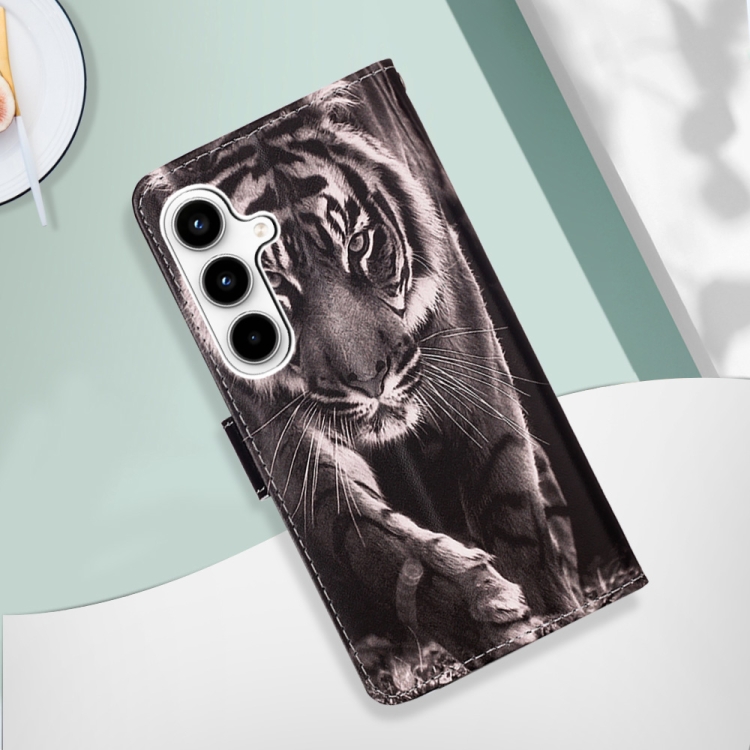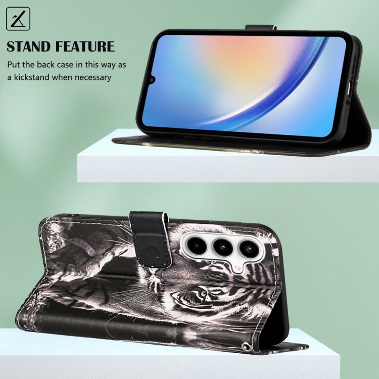 Funda para Teléfono Samsung Galaxy A35 5G Cuero Tejido Liso Patrón Tigre Blanco y Negro
