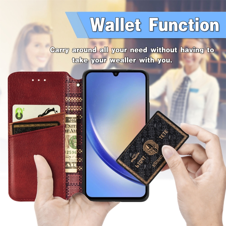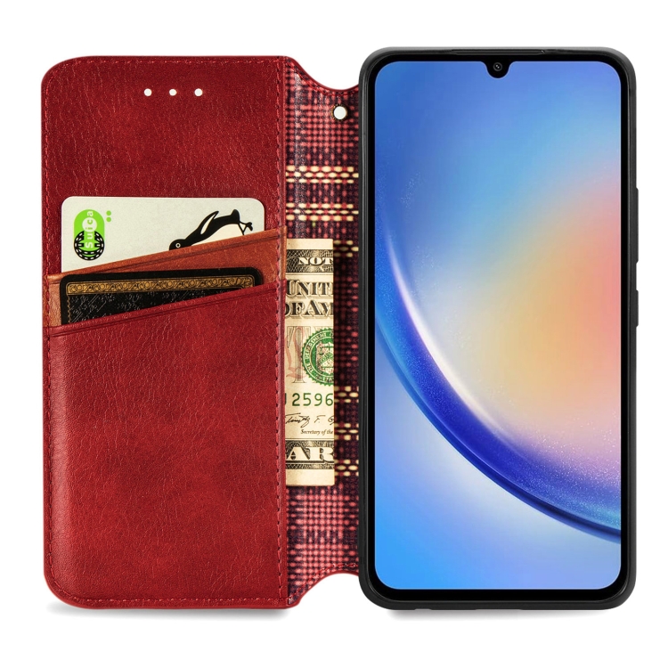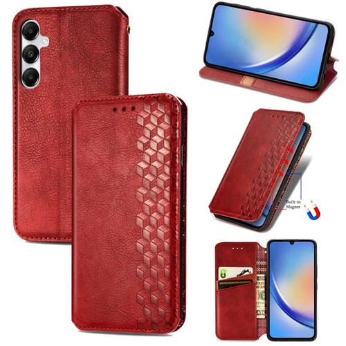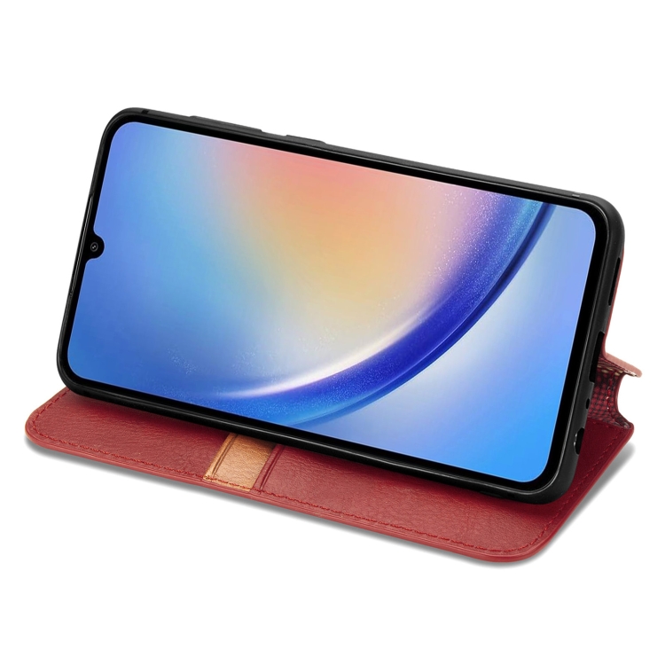 Funda para Teléfono Samsung Galaxy A35 5G Cuero Magnético Prensado Rejilla Cúbica (Rojo)