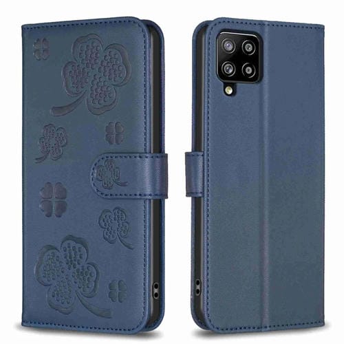 Funda para Samsung Galaxy A42 5G Cuero Relieve Cuatro Hojas (Azul)