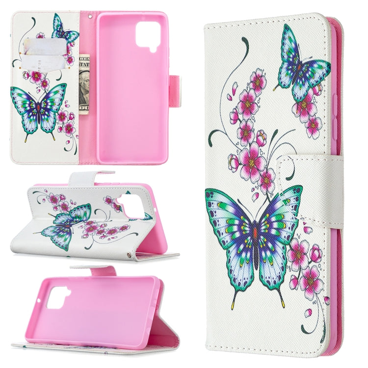 Estuche de Cuero Flip Samsung Galaxy A42 5G Patrón Dibujo Soporte Ranuras (Dos Mariposas)