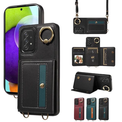 Funda de Cuero Crossbody Wallet Bag con Ring Holder para Samsung Galaxy A52 5G / 4G (Negro)