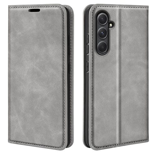 Funda para Teléfono Samsung Galaxy A55 Cuero Succión Magnética Piel Retro (Gris)